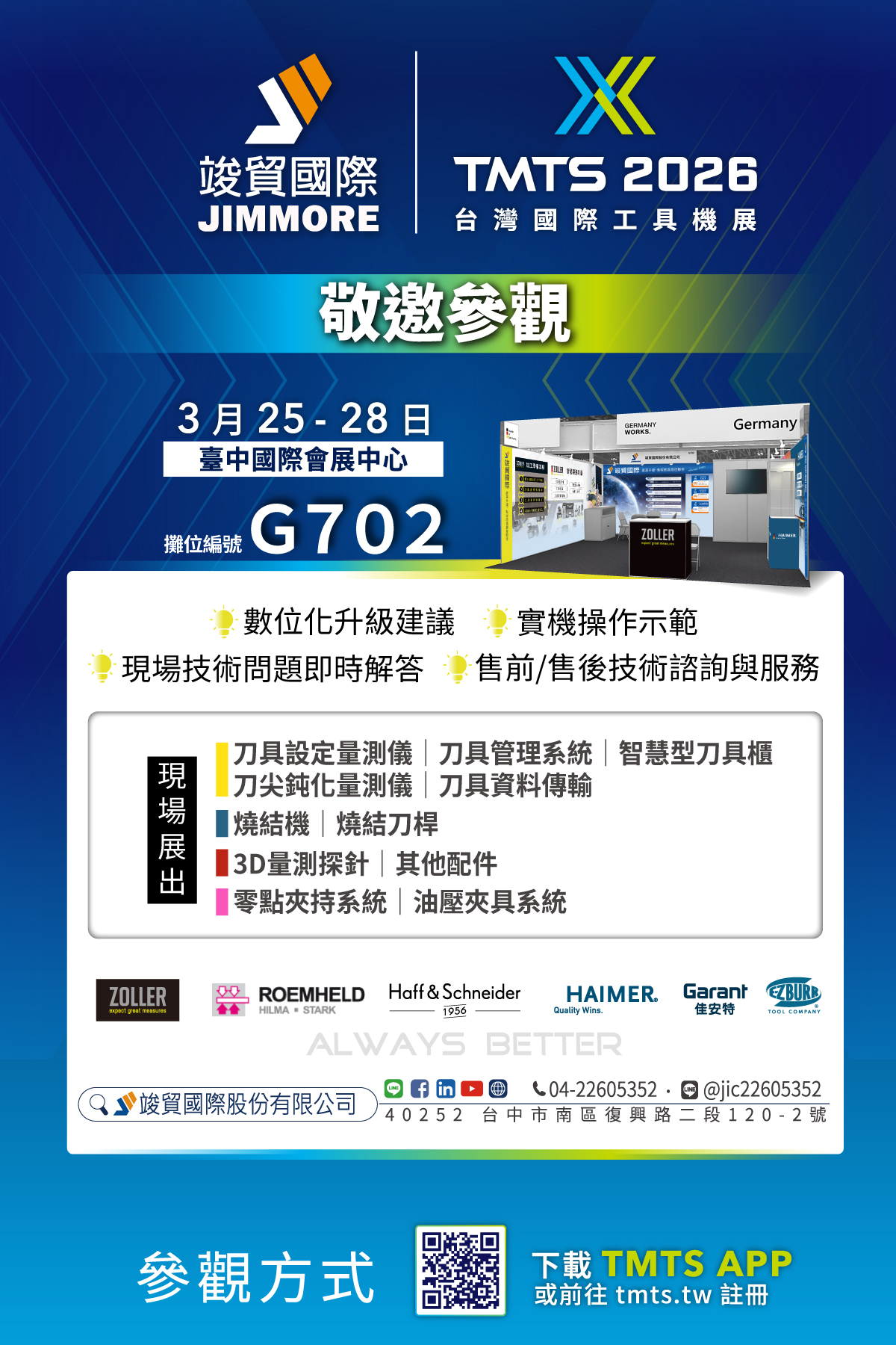 3月25~3月28 歡迎參觀【TMTS 2026台灣國際工具機展-竣貿國際G702】